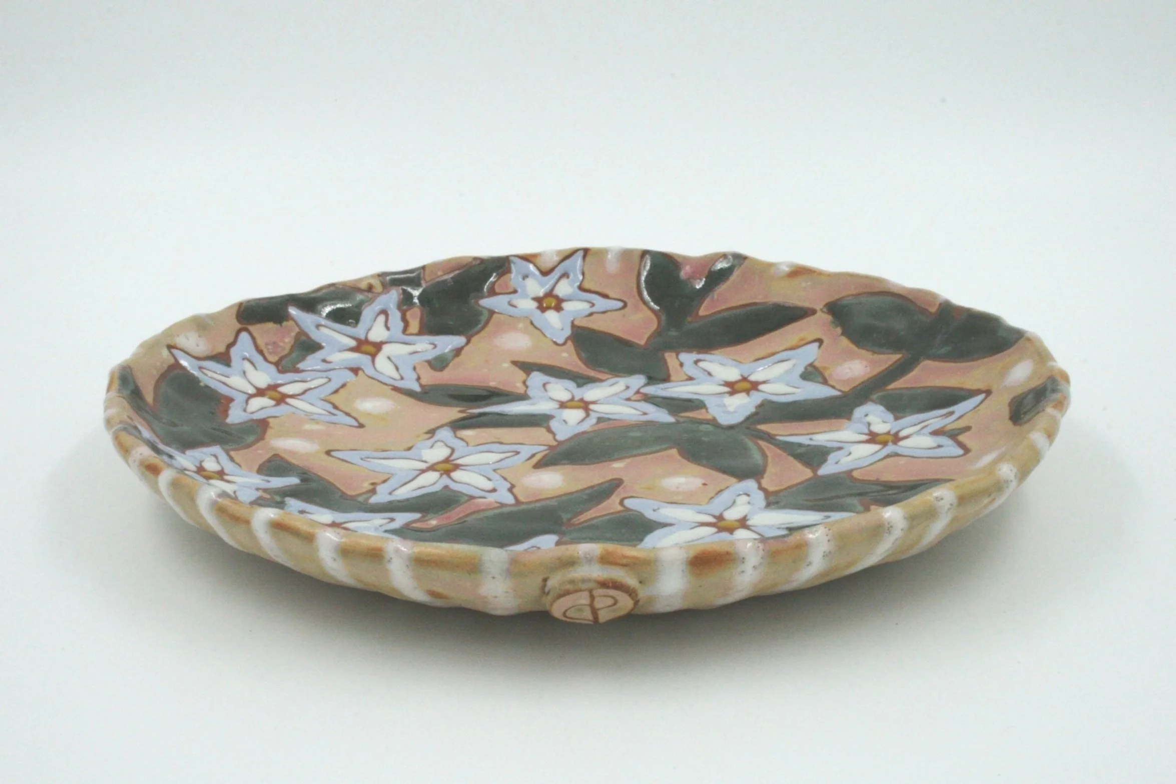 This plate has been coiled and pinched, which gives each one a unique texture and appearance. The soft pinched texture lends itself well to my decorating style, creating greater depth within the decoration. These are the perfect gift for that special someone that has everything.